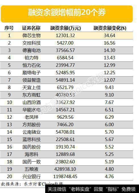 融资余额增幅最大的是微芯生物,该股最新融资余额1.23亿元,较前一交易日增长34.64%;另外,融资余额增幅较大的还有交控科技、德赛电池等,融资余额分别增长16.56%、14.30%。