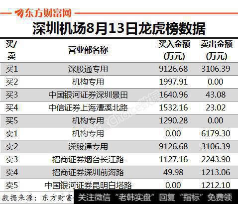 8月13日,深圳机场高开高走,11点15左右即封死涨停,股价报收10.43元/股,为2015年6月25日以来逾4年新高。当日成交额8.22亿元,换手率3.96%。