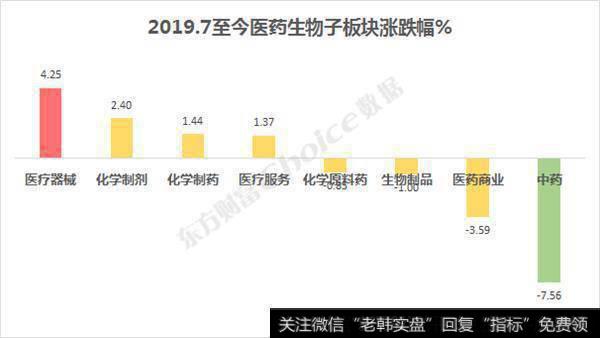 不过,在细分板块上,分化却较为明显,医疗器械行业7月至今涨幅高达4.25%,而中药业跌幅却达7.56%。