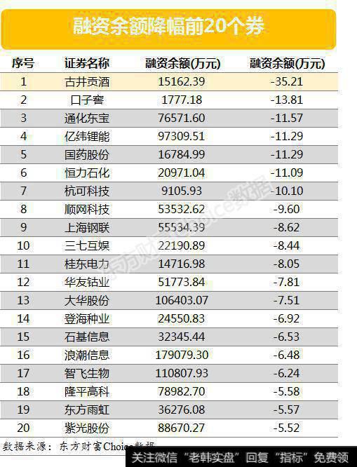 以下为融资余额降幅最大的20只个券: