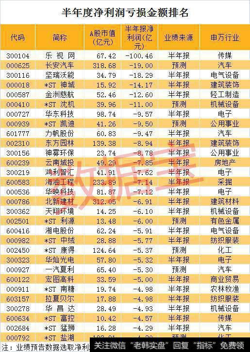 *ST神城、金洲慈航上半年净利润亏损金额分别为14.17亿元、12.6亿元。*ST沈机上半年预亏金额也超过10亿元。上半年亏损金额较大的还有华东科技、*ST 凯迪、力帆股份、东方园林、神雾环保等。