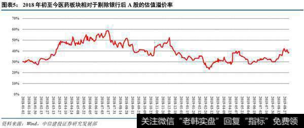 截至2019年9月6日,医药板块估值为35.59倍,沪深300估值为12.27倍,万得全A指数的估值为17.41倍,剔除银行后全部A股的估值为25.69倍,医药板块估值整体处于历史低位。估值溢价率方面,相对于剔除银行后全部A股的溢价率为38.54%。