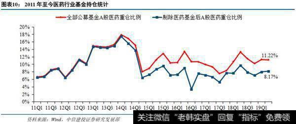 资金配置处于历史平均水平。公募基金二季度整体医药持仓比例在11.22%,较前一季度下降0.08个百分点,剔除医药基金以后的持股比例约为8.17%,较前一季度上升0.15个百分点,基金持仓比例为2015年以来平均水平,但低于2013-2014年的中枢。从持有的个股看,公募基金及海外资金仍然偏好细分市场龙头,其中益丰药房、山东药玻、药明康德、新和成、沃森生物、鱼跃医疗二季度受关注度较高,新进入前20名。南下北上资金方面,本周医药板块整体持股比例变动不大,细分龙头依然获得青睐。