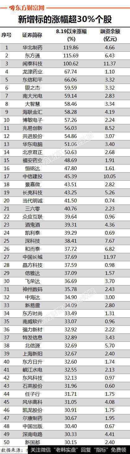 其中50家公司涨幅超过30%,华北制药、东方通和闻泰科技3家更是翻倍,涨幅分别达到119.86%、115.69%和100.62%。
