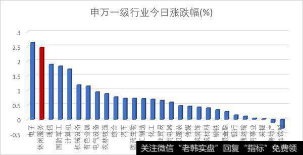 9月19日,A股走出普涨行情,休闲服务行业指数收涨2.46%,在全天大部分时间处于领涨位置。32只成分股中30只收涨、2只收跌。其中,凯撒旅游早盘涨停,众信旅游、张家界等7只股票涨幅超5%。大盘自8月6日开启反弹行情以来,休闲服务行业指数已上涨8.87%,在28个申万一级行业中也位居前列。从公司基本面情况看,板块内不乏低估值、业绩高增长的优质标的。分析人士认为,休闲服务作为朝阳行业,长期发展势头向好。短期来看,今年国庆游市场需求旺盛,旅游产品提价,有利于相关华体会赛事竞猜 提升营收。休闲服务板块旺季行情有望持续。