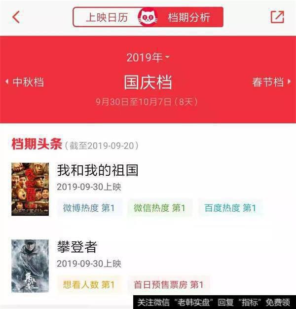十一临近,电影市场即将迎来“国庆档”,《我和我的祖国》《攀登者》《中国机长》三部电影还未上映,已经吊足了资本市场的期待情绪。
