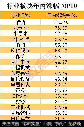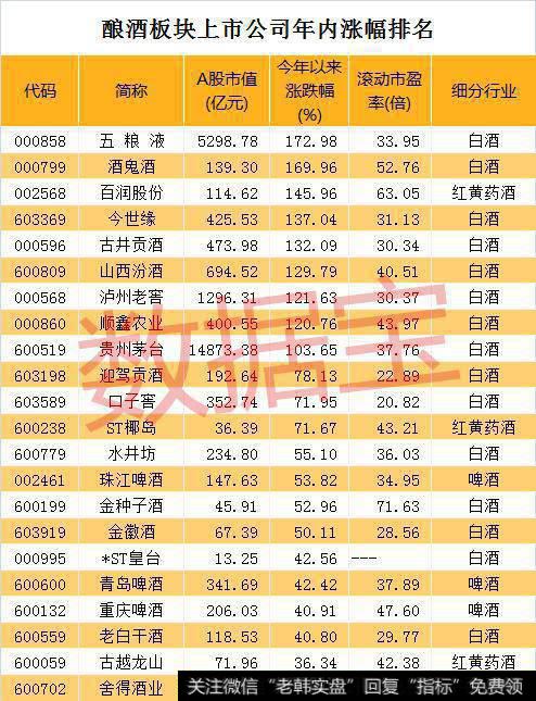 由于连日来白酒龙头及一众二线白酒股的持续走强,酿酒指数今日再创历史新高。截至目前,酿酒指数年内累计涨幅突破100%,成为唯一一个涨幅翻倍的行业板块。与此同时,行业龙头贵州茅台最新A股市值达到1.49万亿元,已经超越工商银行,成为目前A股市值最高的华体会赛事竞猜 。数据宝统计显示,酿酒板块华体会赛事竞猜 A股市值2.79万亿元,已经超过计算机、房地产、传媒、汽车、机械设备等多个行业A股总市值。