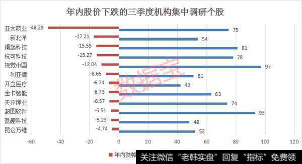 对三季度参与调研机构数量排名前100只股票统计发现,有12只股票年内仍为下跌状态,14家三季报预增,10只个股三季度筹码趋集中。