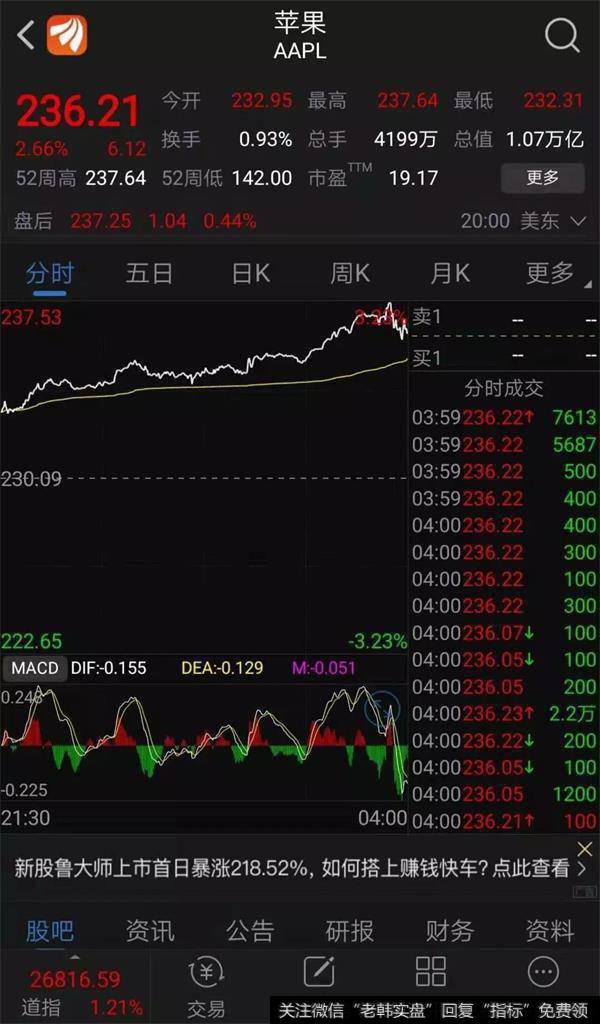 美国当地时间10月11日,苹果股价大涨2.66%,收报236.21美元创历史新高,总市值达1.0675万亿美元,成为美股市值最高的公司。