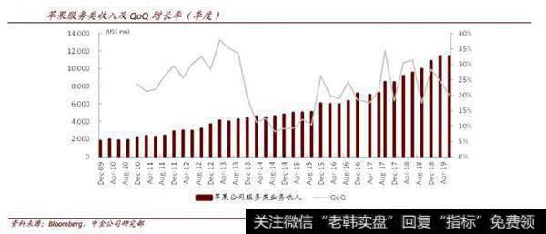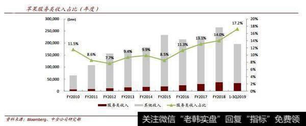中金公司指出,2017年后,智能手机市场逐渐饱和,手机从增量转为存量,苹果手机的销量开始下滑,影响了苹果手机的收入增长。近几年来,凭借硬件的存量优势和封闭的苹果生态,苹果正在积极向服务类业务转型,服务类业务体量和占公司总营收的比例均有增长。
