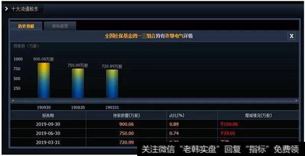 以许继电气为例,社保基金四一三组合在第三季度增持公司150.06万股,为第五大流通股股东。