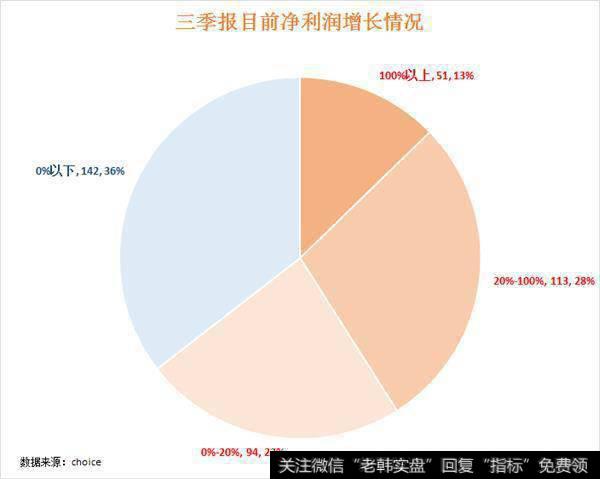 截止10月23日A股已经有400家华体会赛事竞猜 公布了2019年三季报。从数据看,258家公司净利润实现同比正增长,占比64%,142家净利润下降,占比36%,预喜公司仍占多数。其中净利润翻倍的公司有51家,占比13%,净利润增长20%-100%的公司有113家,占比28%,净利增幅在20%一下的有 94件,占比23%。