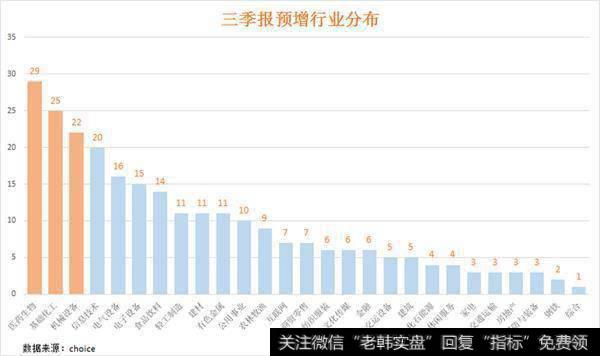 从净利润正增长公司行业的行业分布看,医药生物、基础化工、机械设备等行业正增长公司最多的行业,其中医药生物板块数据尤其突出,另外信息技术和电子设备板块业绩增长公司也较多,是值得关注的板块。另外,国防设备、钢铁、综合等板块表现较差。