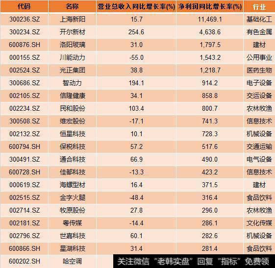 从目前的数据看,净利润增幅超10倍的有5家,净利润增长翻倍的股票有51家。上海新阳三季报实现营业总收入4.6亿,同比增长15.7%;实现归母净利润2.9亿,增长11469.1%,是净利润增幅最大的公司。上年同期为-254.7万元,同比扭亏为赢。
