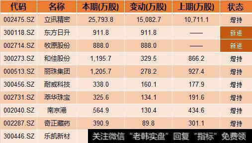 从证金和汇金的持股情况看,国家队增持8股,新进2股。其中增持股份最多的是立讯精密。立讯精密股价涨幅今年以来已经超过115%,公司受益通信设备国产化的利好,公司连接器及连接线业务有望迎来突破增长,基站天线滤波器业务也有望受益5G基站的建设。