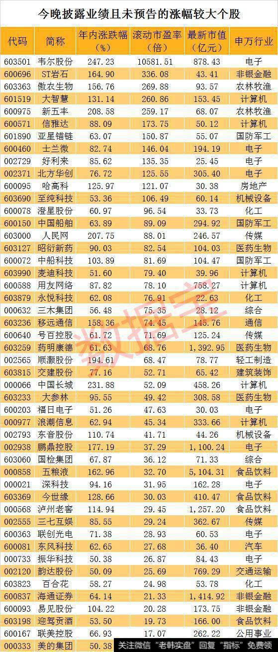 今天晚上,最后一批三季报密集将公布。对于投资者来说,在三季报披露之前,尤其是对于那些没有公布三季报预告且股价大幅飙升的个股,暂时规避或许是最佳选择。