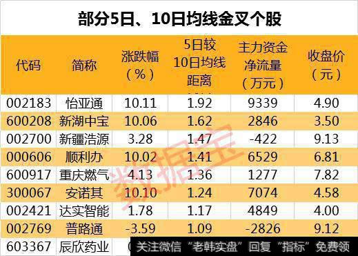 截至最新收盘,有58只A股的5日均线主动上穿10日均线,其中怡亚通、新湖中宝、新疆浩源等个股的5日均线较10日均线距离最大,分别达1.92%、1.62%、1.47%。