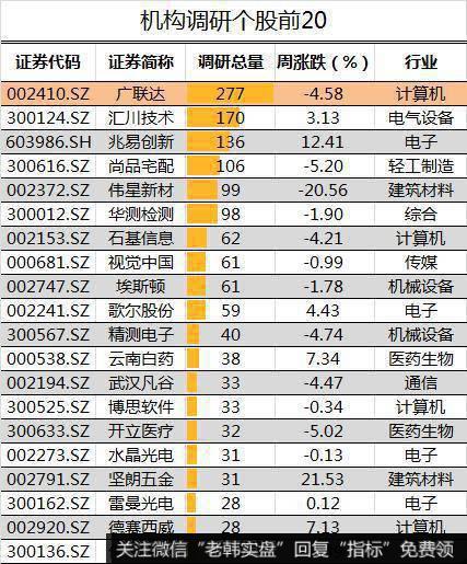 以下为最近一周机构调研个股前20名单: