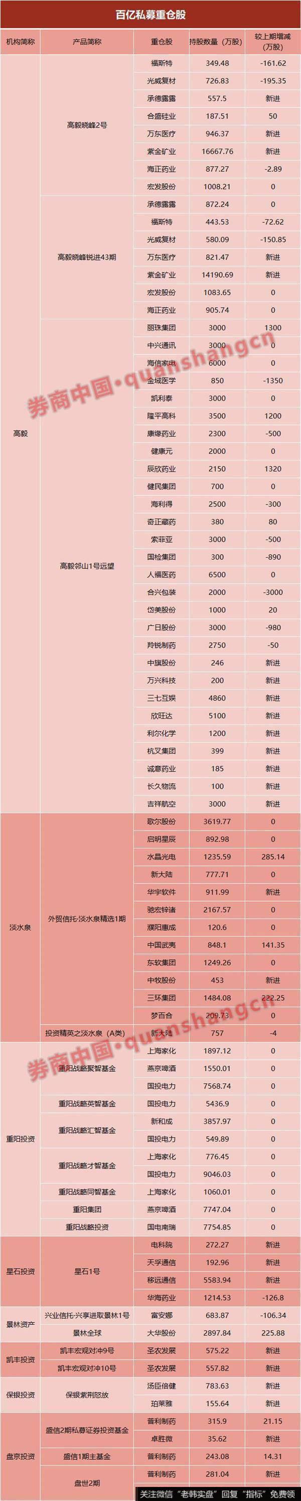 原标题:百亿私募持仓大曝光!高毅冯柳邓晓峰联手布局36股,淡水泉现身12股,重阳、星石、景林…来看全名单