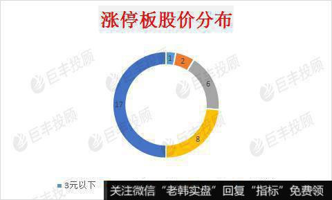 今天涨停板个股数量没有出现较大幅度上涨,在市场中涨停板的数量比较低迷之后,特别是近期还创出了涨停板数量的最低值,今天涨停股的数量略有改善,但还是有改善的空间。从今天涨停股从股价上看,今天10元以上的涨停股数量为25只,其中17只个股的股价在20元以上, 10元以下涨停股数量一共出现9只,5元以下的涨停股数量为3只。