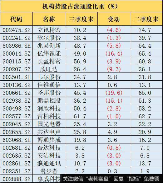 长盈精密、欣旺达、韦尔股份这几只占比较高,流通股占比均超30%。