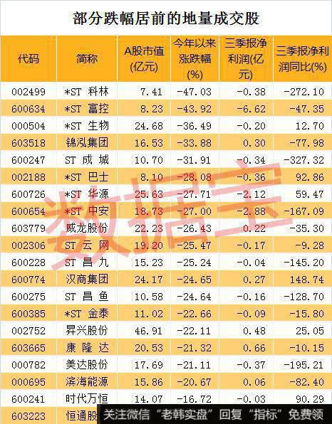 因业绩连亏或者担保违规、资金占用等情形被实施退市风险警示或其他风险警示,此外业绩爆雷案例的频发,加上公司实控人或高管被调查,市场避险情绪升温,一批公司因多方面因素遭市场冷遇,出现了地量成交的情况。