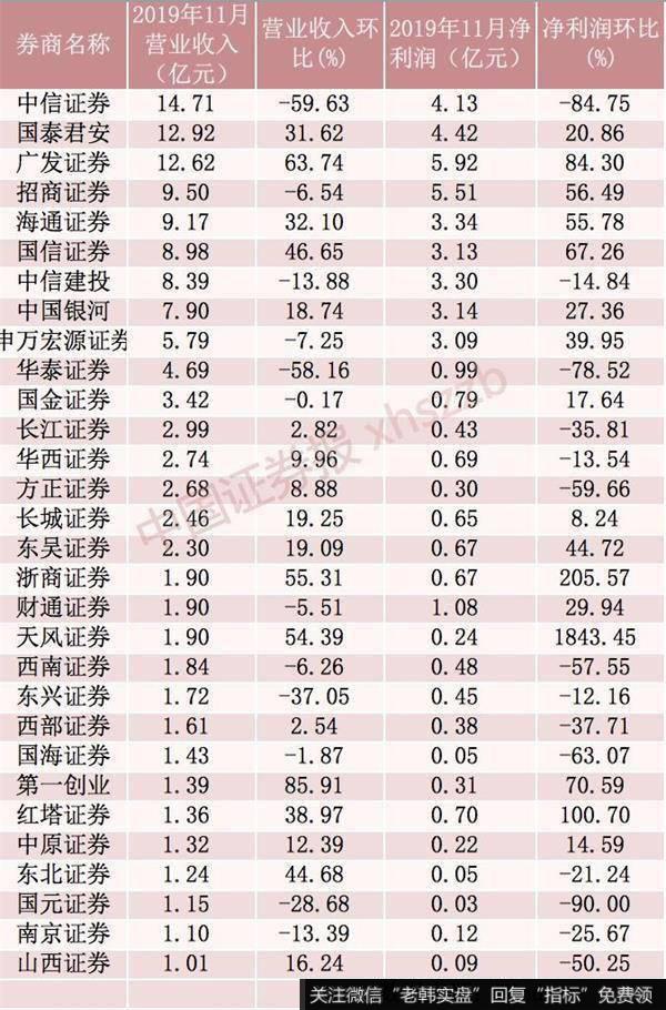 此外,还有6家券商11月净利润环比下滑幅度也超过50%,分别是中信证券、华泰证券、国海证券、第一创业、西南证券和方正证券。