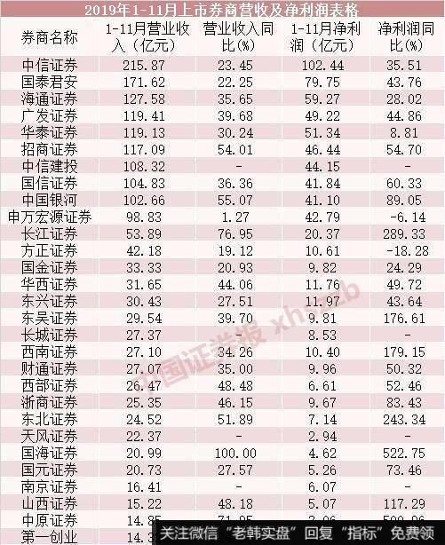 对于1-11月业绩而言,基于2018年基数较低的原因,大多数券商2019年前11个月营收和净利同比均实现上涨。
