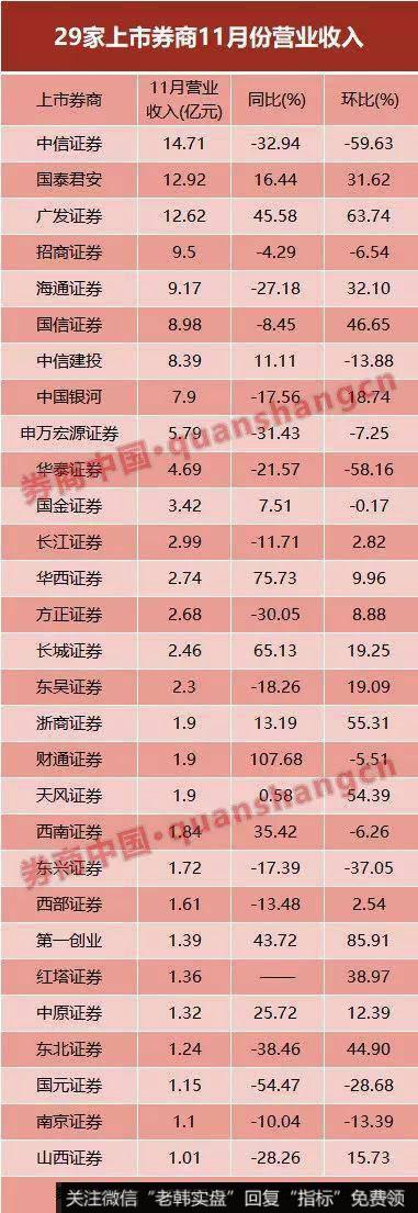 原标题:11月券业遭遇集体滑铁卢?6成业绩下滑,中信、华泰净利大降超70%,广发成最大黑马,录得单月冠军