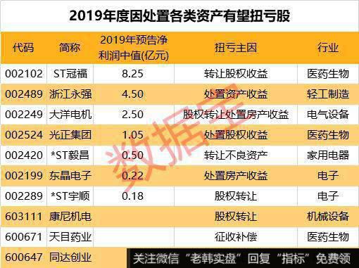 在上述业绩预告股中,有10家公司受益于资产处置有望扭亏,包括2018年度巨亏股康尼机电、大洋电机及ST冠福。半数个股总资产不足20亿元,东晶电子及同达创业不到5亿元。