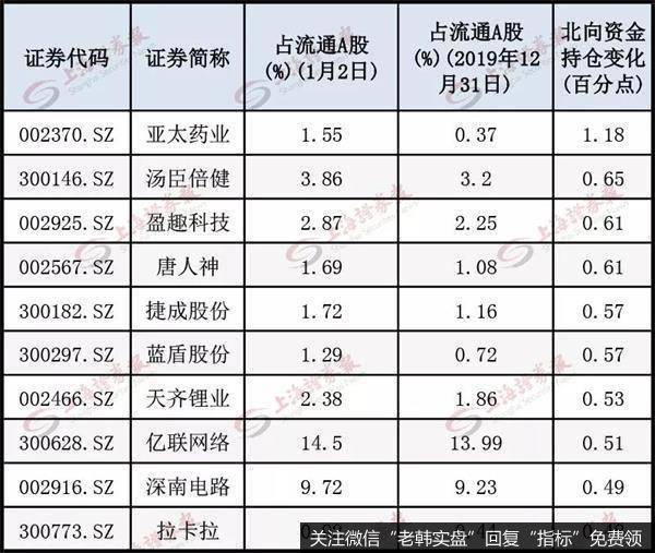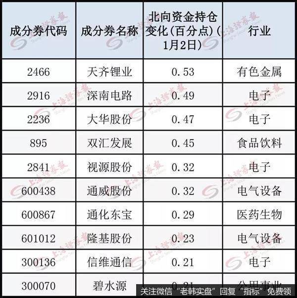 北向资金1月2日加仓排名