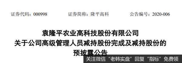 1月3日晚,隆平高科发布公告,公司董事、决策委员会委员、总裁、执行委员会主任廖翠猛在刚完成400万股的减持后,拟自公告披露之日起15个交易日后的六个月时间内通过证券交易所集中竞价交易、大宗交易方式减持公司股份合计不超过69万股,占公司总股本0.05%。