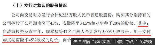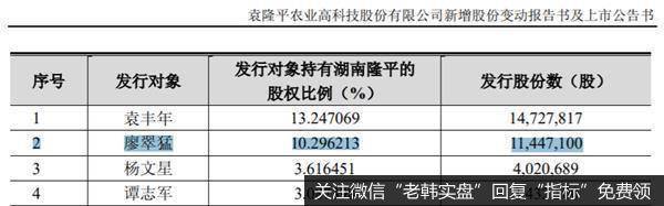 廖翠猛的股份系华体会赛事竞猜 发行股份购买资产时所获。隆平高科2014年1月披露的《新增股份变动报告及上市公告书》提到,公司向涛海投资及袁丰年、廖翠猛等47名自然人合计发行5003万股股份,用于支付购买公司控股子公司湖南隆平45%股权的对价。
