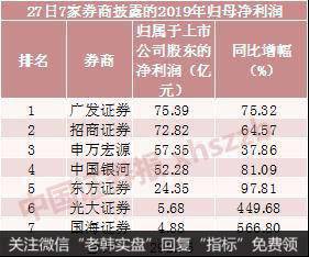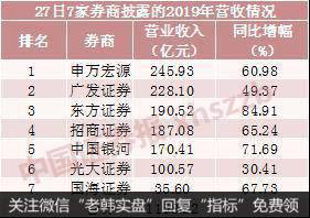 3月27日,招商证券、银河证券、光大证券、国海证券、申万宏源、广发证券、东方证券7家券商发布2019年年报。7家券商2019年合计实现营收1158.22亿元,实现归母净利润292.76亿元。