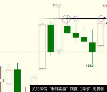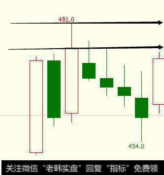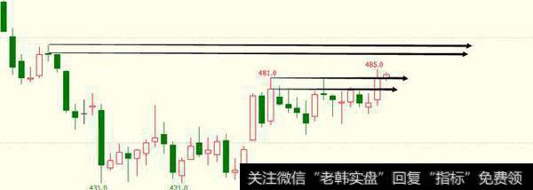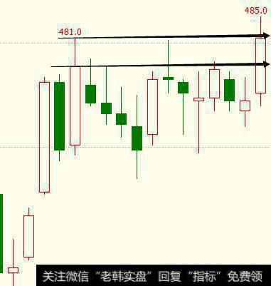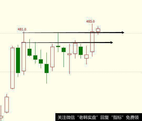于是,我们只能认为,上影线的高点481位置才是高点。然后又过了一天,我们发现这两个位置都被突破了:
