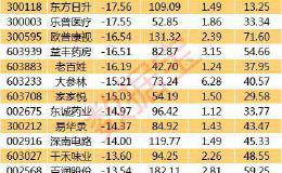0.120, 0.08, 0.80%)、羚锐制药(9.890, -0.12, -1.20%)、浪潮信息(30.600, -0.23, -0.75%)、益丰药房(...
